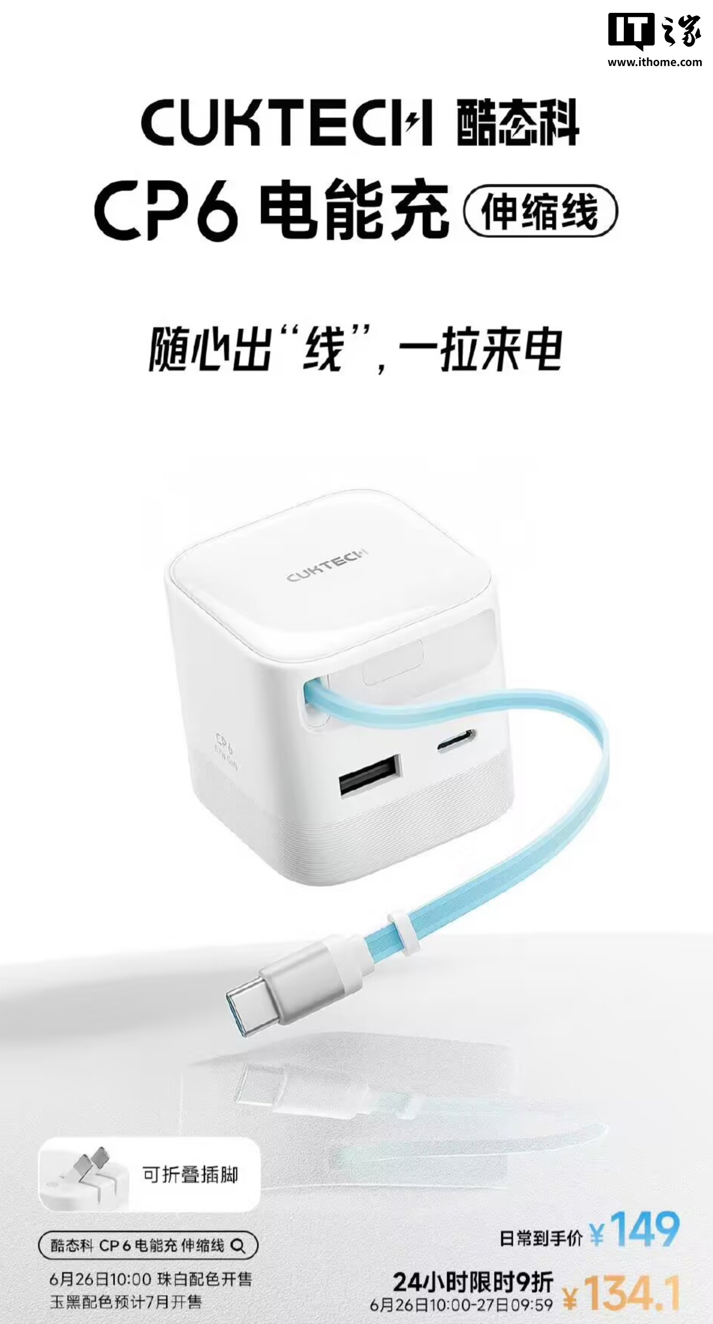 酷态科 CP6 电能充伸缩线(充电头)采用 2C+1A 规格股票配资推荐网,定价为 149 元。